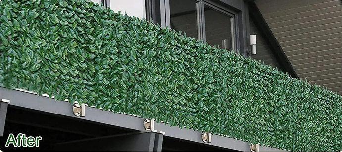 Decorează-ți casa, asigurând în același timp intimitatea față de lumea exterioară prin plasarea strategică a gardului în zonele care pot fi expuse, Decorul de confidențialitate cu frunze artificiale este destinat atât utilizării interioare, cât și exterioare. Oferă un plus de intimitate fără goluri.